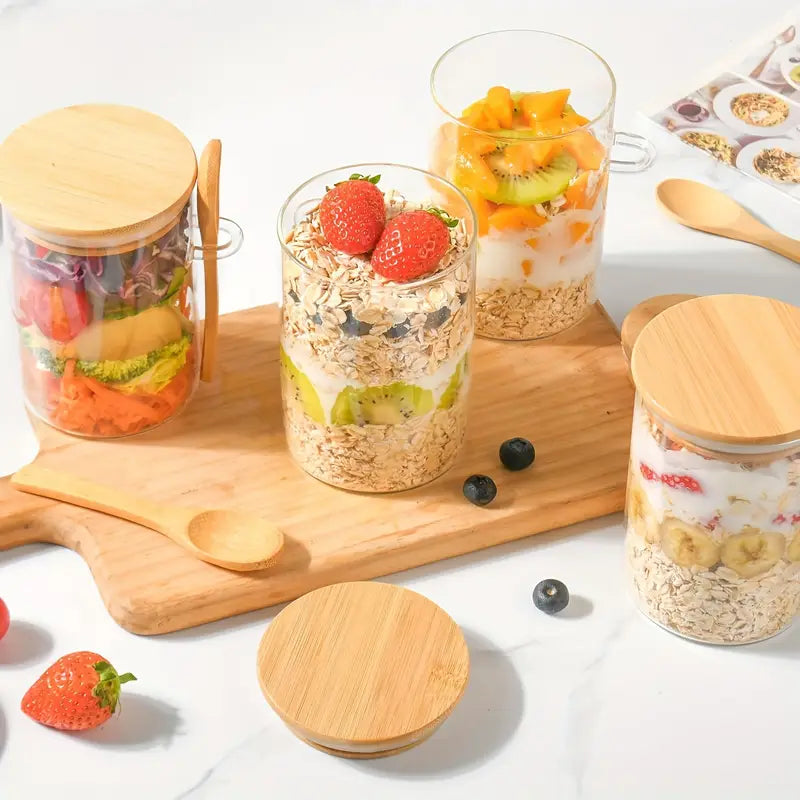 Conçus en verre alimentaire 100 % sûr, sans BPA, résistants à la chaleur et aux odeurs. Vos aliments restent sains, frais et protégés au quotidien.